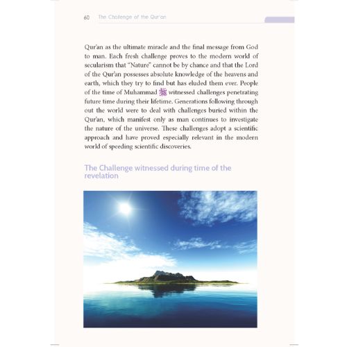 “The Challenge of the Qur’an” is an invitation for human hearts to echo the message of the Qur’an; to see how all questions and problems dissolve to give peace of mind, in the light of the Holy Book. “Verily, in the creation of the heavens and the earth and the alternation of the night and day, and the ships which sail through the sea with that which is of use to Mankind, and the water (rain) which Allah sends down from the sky and makes the earth alive therewith after its death, and the moving (living) creatures of all kinds that He has scattered therein, and in the veering of the winds and clouds which are held between the sky and the earth, are indeed Ayat (proofs, evidences, signs etc.) for people of understanding.” – Surah al-Baqarah, 2:164
