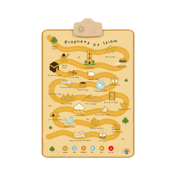 انطلق في رحلة عبر حياة جميع الأنبياء الخمسة والعشرين المذكورين في القرآن الكريم مع لوحة "أنبياء الإسلام" الجدارية التفاعلية. صُممت هذه اللوحة الجدارية الفريدة لجعل تعلم الأنبياء تجربة ممتعة وتعليمية وغامرة، حيث تأسر الصغار من خلال سرد القصص والاختبارات والأناشيد.