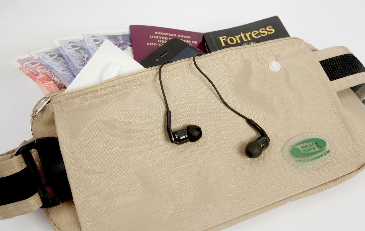 These bags are wire Re-Enforced making them slash/slit proof. This is important as there have been many cases were people have had their bags cut and stolen. Hajj Safe Waist Bags are the Only Anti-Theft Hajj Waist bags and Ihram Belts for Hajj and Umrah. They can be worn over the Ihram or used as a belt to hold the Ihram up.