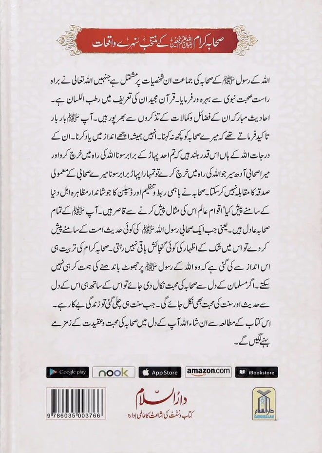 The book Sahaba Karam K Muntakhab Sunahray Waqiyat by Abdul Malik Mujahid, is a remarkable collection of the golden stories of the Companions of the Prophet Muhammad (PBUH). These were the blessed individuals who had the privilege of witnessing divine revelation and receiving direct guidance from the Prophet (PBUH). Their lives serve as timeless models of faith, sacrifice, courage, and moral excellence.