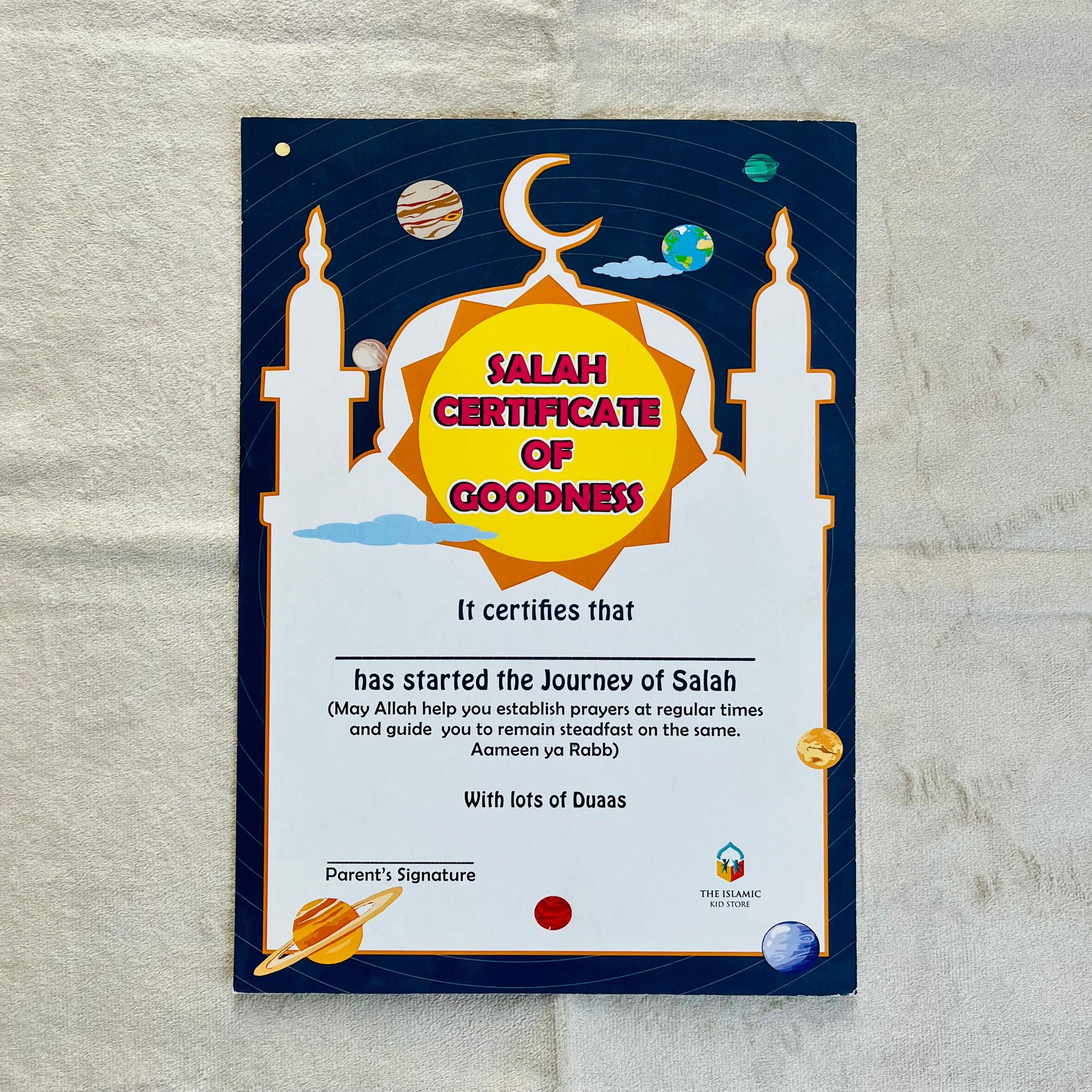 - Salah Certificate of Goodness is rewarded for the child's efforts and commitment in achieving his/her Salah goals.