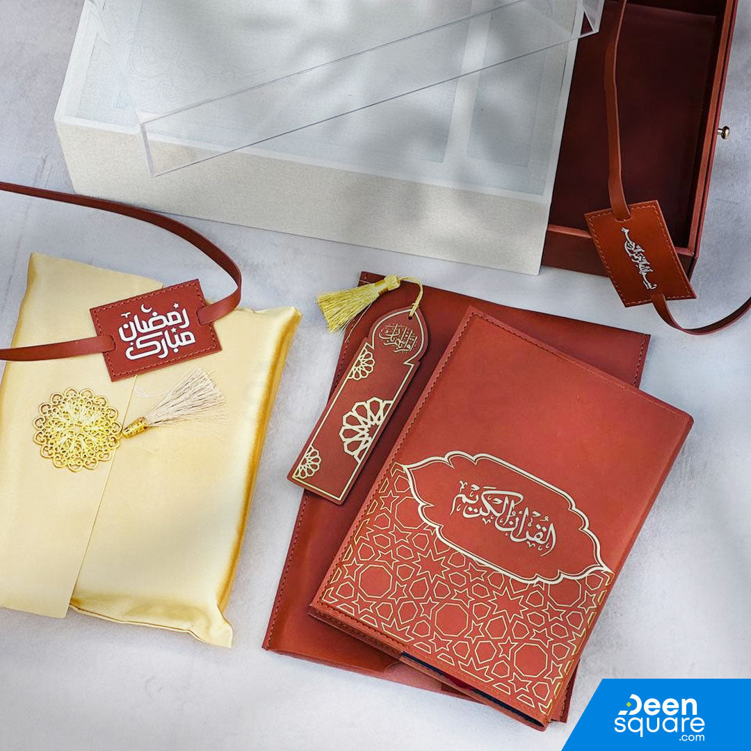 ارفع رحلتك الروحية مع مجموعة الهدايا الإسلامية الراقية التي تم تنسيقها بعناية فائقة، والتي تُقدَّم بأناقة في صندوق جلدية مزود بدرج مريح. تتضمن هذه المجموعة الفاخرة مجموعة من العناصر الأساسية المصممة لإثراء إيمانك وتعزيز تجربتك في العبادة.