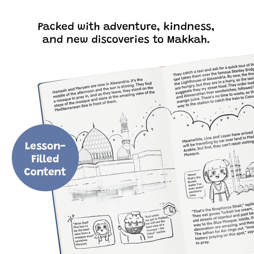 Behind the Story – Inspired by the television programme Race Across the World, this adventure combines the thrill of global travel with the spirit of Islamic learning. With no planes allowed, the children discover creative ways to continue their journey, reminding readers that every step towards Makkah can be an act of patience, courage, and worship.