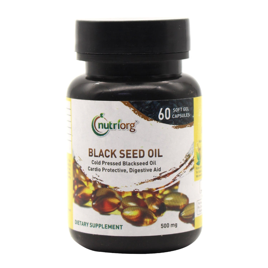 Nutriorg Black Seed Oil 500 mg capsules made from 100% organic Black Seeds. It is extracted from the highest quality of organic Black Seeds. The oil is purely organic. The Nutriorg Black seed Oil Soft Gel Capsules (500 g) have multi-dimensional purposes. It has anti-bacterial antioxidants. Due to such an array of benefits, it has earned the name of the God Herb. It aids weight loss and helps maintain the body mass index (BMI). Black seed oil is known to reduce the severity of eczema and acne. It is believed to reduce liver and kidney disease complications. It also possesses properties that can increase fertility in males.