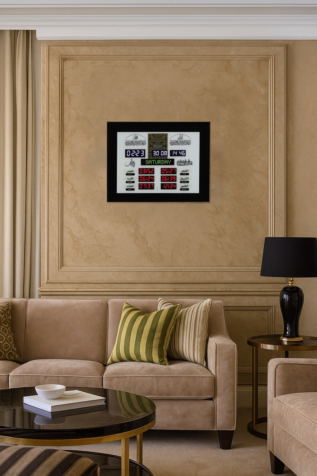 A clock that seamlessly combines precision, functionality, and smart Islamic technology—your perfect companion for organizing your time and staying committed to your prayers.