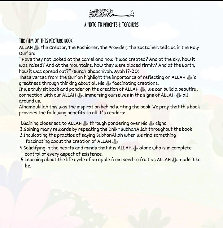 My Allah Is Amazing is a delightful early-years Islamic book that introduces toddlers to the wonders of Allah’s creation. Written by Umm Adam and published by Safwah Publications, this charming story helps little ones understand how Allah turns a tiny apple seed into a juicy, delicious apple—just for them!