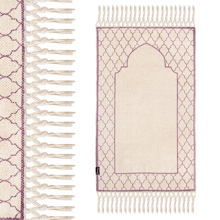 Our Muslim Prayer Rug stands as a testament to fine Organic Cotton craftsmanship. Premium materials and intricate patterns, outlined by a decorative border, accentuate the truly unique design and composition of the mat.