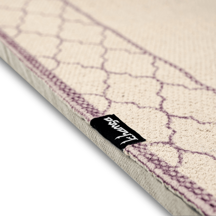 Immerse yourself in the natural organic cotton colour and handmade patterns, drawing inspiration from traditional Arabic designs. Beyond its role as a prayer mat, the Khamsa Comfort doubles as a decorative piece, creating a harmonious spiritual environment tailored to your distinctive style.