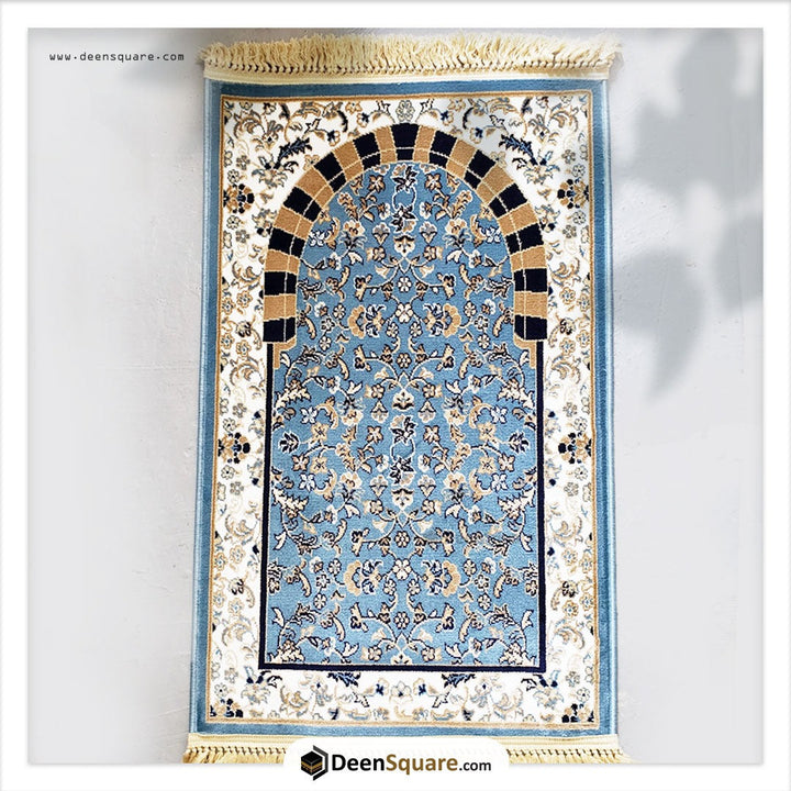Al-Rawdah Mehrab prayer mat inspired by Al-rawdah patterns.