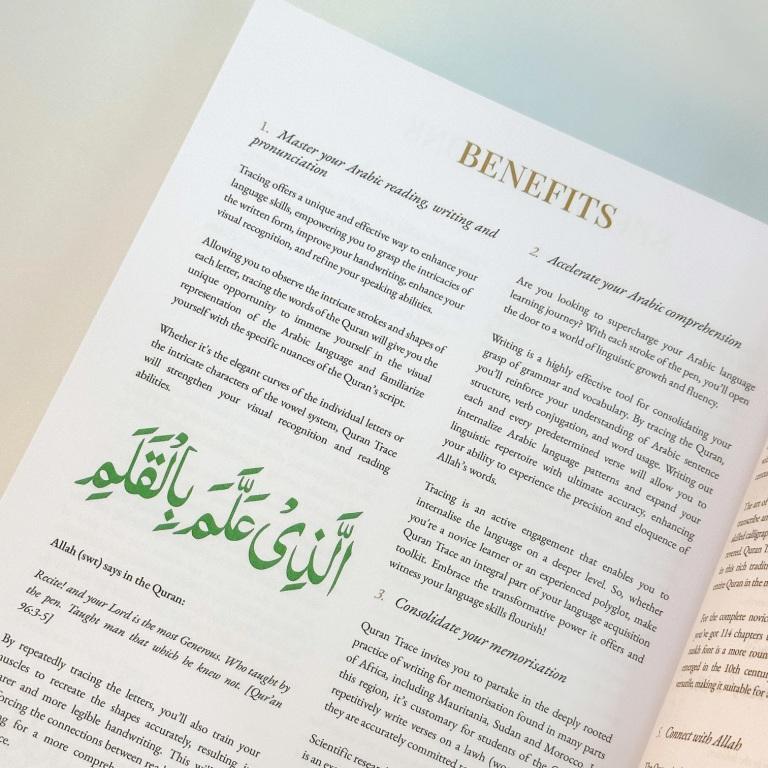 • Learn through tactile engagement, as tracing each letter deepens both your comprehension and recitation fluency.