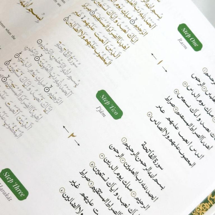 • Master the art of Quranic writing and recitation, using a structured, traceable 15-line format based on the Nastaliq script of the South Asian Mushaf.