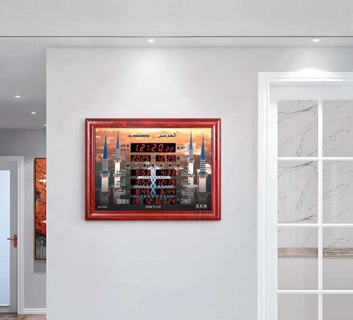 Introducing the latest exclusive Azan Clock, designed to bring both functionality and elegance to your home, masjid, or hall.
