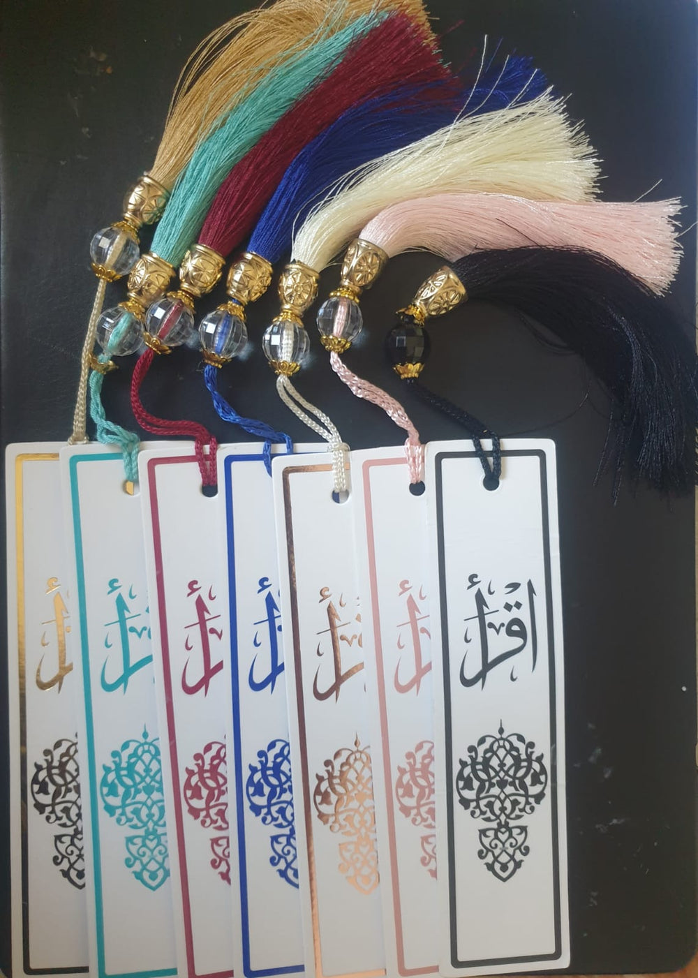 The Iqra bookmark is a beautiful and elegant accessory designed to mark the pages of your favorite Islamic books and Quran. It features stunning tassels that dangle from the bottom of the bookmark, adding a touch of sophistication and style to your reading experience.